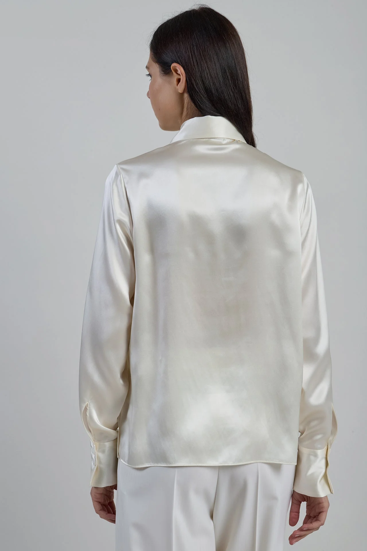 Classic shirt in double silk satin, 14 momme. This premium quality Comasca silk gives the garment exceptional lustre and femininity.