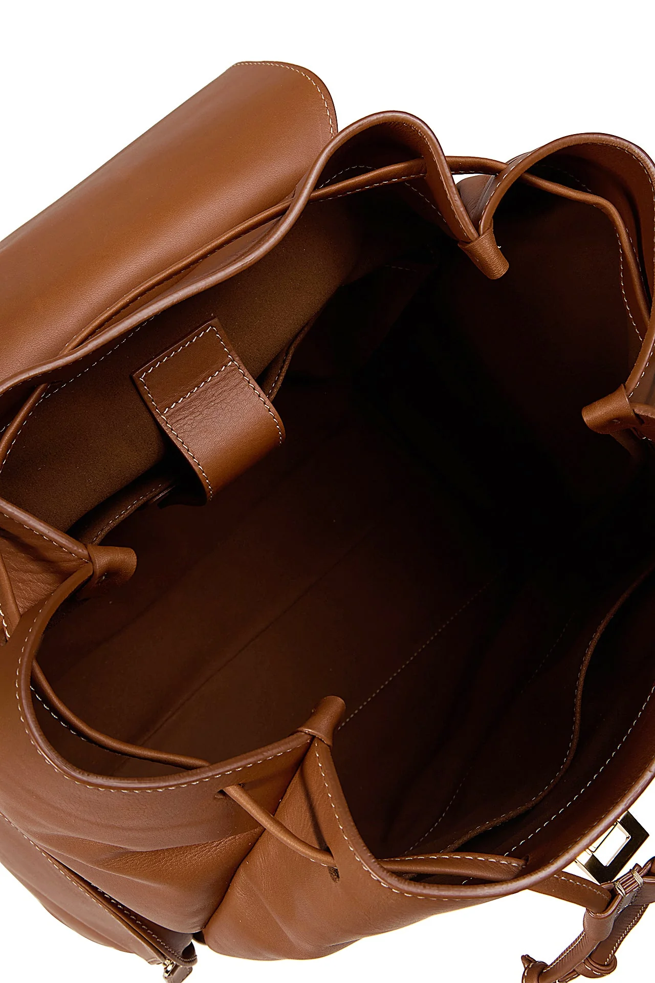 Backpack in aniline calfskin leather with gold-coloured hardware. The high-quality leather feels extremely soft to the touch. The inherent qualities of the material enhance its beauty and value. The external pockets and internal compartments add functionality to the accessory, allowing for optimal space management. Height 40 cm, width 30 cm, depth 18 cm.